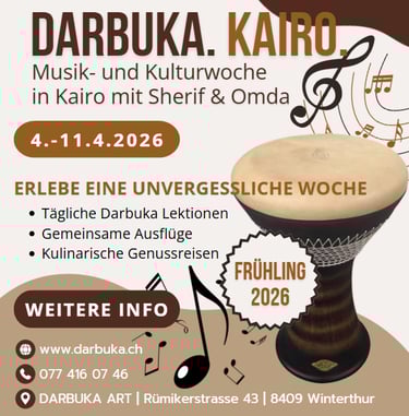 Ich habe mich jede Woche auf den Darbuka-Kurs gefeut, da ich dort den Alltag komplett vergessen habe und in eine neue Welt voll Rhythmen eingetaucht bin. Das Spielen der Darbuka wirkt auf mich und meinen Körper befreiend und macht enorm Spass. Ich wuerde jedem empfehlen, es selber auszuprobieren! Theresa F.