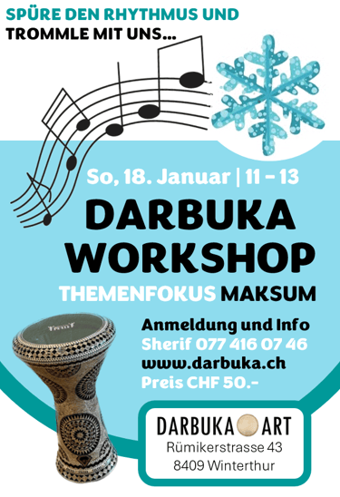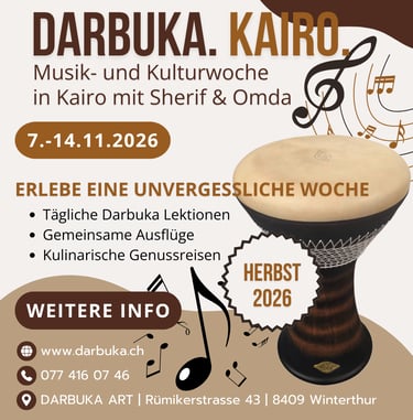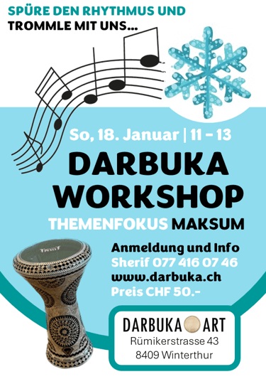 Ich habe mich jede Woche auf den Darbuka-Kurs gefeut, da ich dort den Alltag komplett vergessen habe und in eine neue Welt voll Rhythmen eingetaucht bin. Das Spielen der Darbuka wirkt auf mich und meinen Körper befreiend und macht enorm Spass. Ich wuerde jedem empfehlen, es selber auszuprobieren! Theresa F.